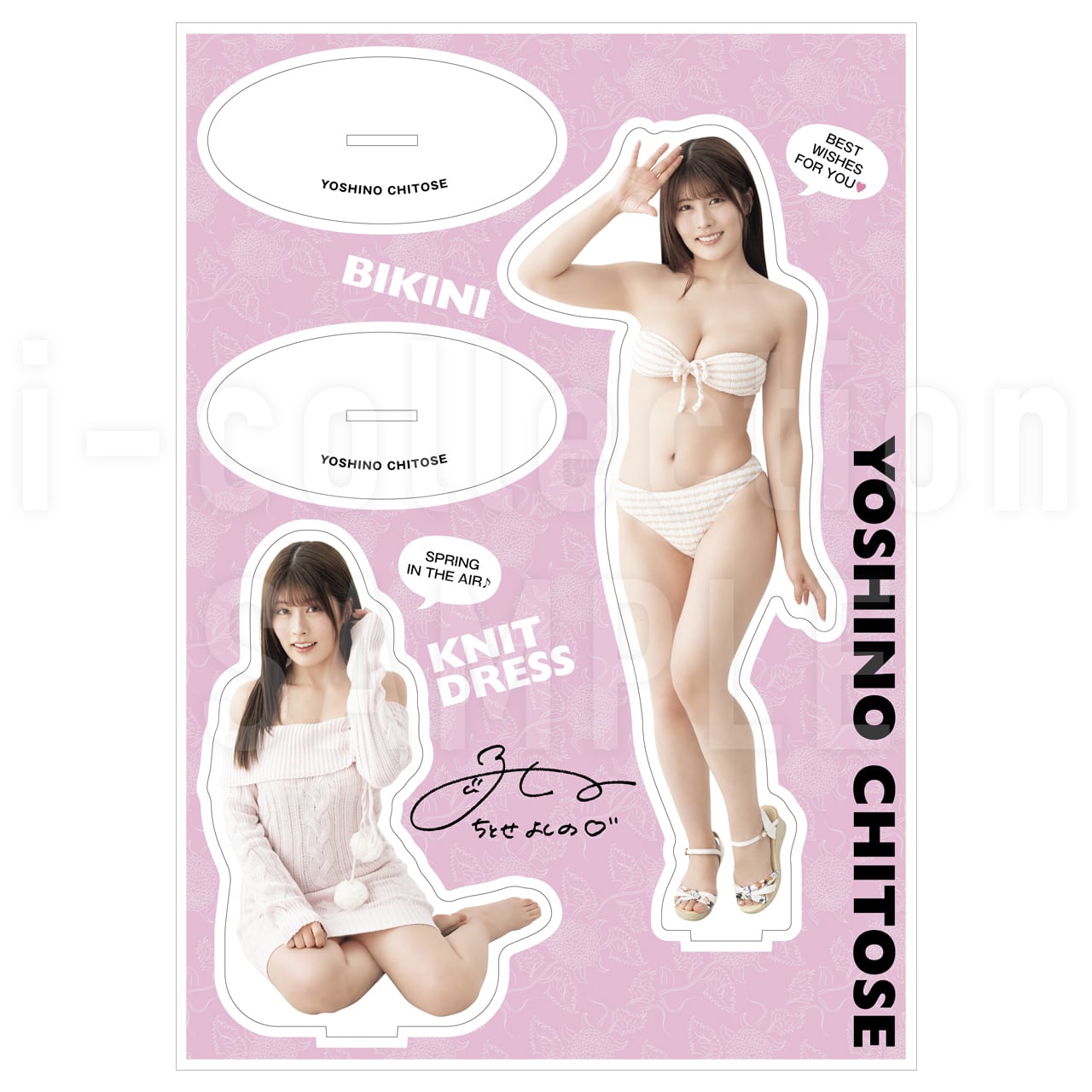 ★こちらの特典付き予約商品のお申込み可能期間は2026年1月29日(木)~2026年3月1日(日)です。 ★ご注文いただいた商品の発送は2026年3月下旬以降を予定しております。ただし、締切が後日の予約商品と一緒にご注文の場合は、2026年4月下旬以降の発送予定となります。予めご了承ください。 ★オリジナル生写真(1種類)をご購入特典として進呈いたします(一決済につき1枚です。一商品につき1枚ではございません)。 ☆ 飾って楽しいアクリルフィギュアが登場!厚さ3mmの高品質アクリルを使用しており、スタンドを使えばしっかりと自立。お部屋をキュートにジャックさせるもよし、お出かけして記念撮影するもよし、使い方はあなた次第! ※商品画像はイメージです。画像トリミング等が実物と異なる場合や、お客様のPCモニターによって、画像の色が実物と異なって見える場合がございます。 ※アクリルフィギュア&スタンドと特典生写真のサインはプリントです。 ―――――――――――――――――― 【PROFILE】 ちとせ よしの:Yoshino Chitose 2000年1月8日生まれ。SPJ Entertainment所属。 T158/B95/W65/H98。 佐賀県出身。血液型A型。 アイドルグループ「あまいものつめあわせ」ピンク担当。 https://www.spj-idol.com/ 「ちとせよしのカレンダー2026.04-2027.03」を2025年3月8日(日)発売予定。 カレンダー発売記念イベントは2025年3月8日(日)14:00~秋葉原ハンドレッド2Fにて開催予定。 https://passmarket.yahoo.co.jp/event/show/detail/0277sqj6ftx41.html X https://x.com/chitose_yoshino Instagram https://www.instagram.com/chitose_yoshino/ YouTube https://www.youtube.com/channel/UCFKnWk6MsWNf6g6ky2OSYGA ※記載情報は2026年1月時点のものです。 ―――――――――――――――――― <サイズ> 縦297mm×横210mm×厚さ3mm ―――――――――――――――――― 【ご予約商品と通常商品の同時注文について】 ※本商品は予約商品です。 予約商品と通常販売商品を一緒にご注文の場合、予約商品の入荷後の発送となります。予めご了承ください。